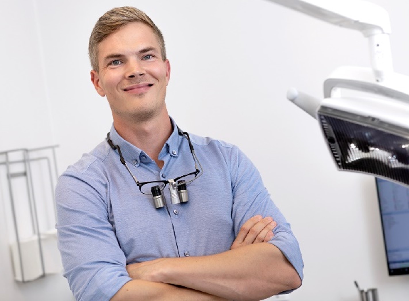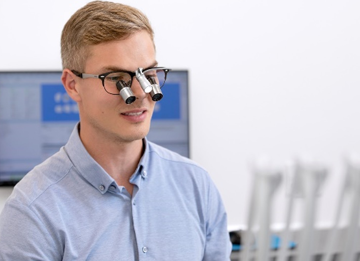 Oplev kvaliteten i stel og lup og se detaljen præcist i en ergonomisk optimal og afslappet arbejdsstilling – med hygiejnisk afstand til din patient. Vores optikere kommer til dig på din klinik, hvor du har de bedste forudsætninger for at prøve vores forskellige lupbriller til tandlæger med en patient eller kollega i stolen.